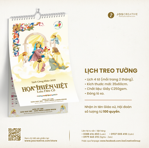 Kích thước 35x60cm; Lịch 4 tờ (mỗi trang 2 tháng); Chất liệu: Giấy C250gsm. Bạn có thể cắt rời phần hình ảnh từ lịch để biến chúng thành tranh treo tường nghệ thuật.